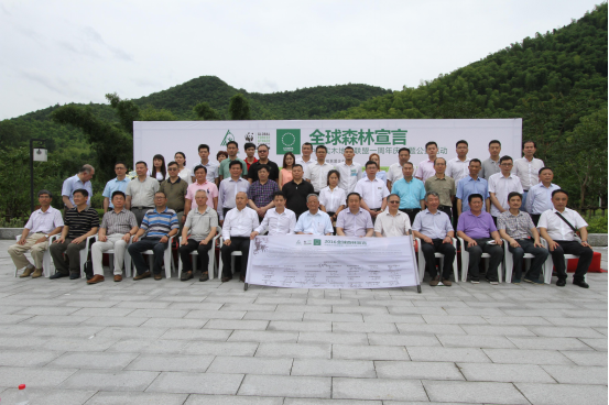 香蕉视频黄色片丝袜地板獲得全球森林宣言的紀念獎杯(右三)