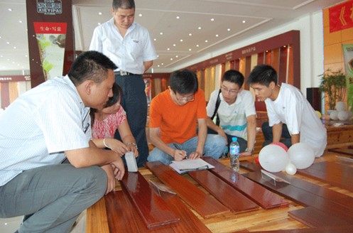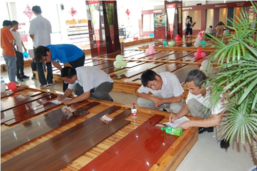 在參觀完生產線回到展廳,香蕉视频黄色片丝袜地板公司特別安排數位銷售專員為客戶們從產品特點、地板鋪裝保養知識和家裝流行時尚角度現場講解和答疑。讓客戶更深入地了解地板家裝,更好的參與團購、分享實惠。並在當場實例搭配試驗,給客戶最直觀的形象感受,這一環節贏得了廣大客戶的積極參與。其中旅購團的小王興奮的告訴記者:“我家正準備鋪地板,這些產品知識對我來說真是一場及時雨,香蕉视频黄色片丝袜地板58道精湛的工藝,15道嚴格檢測,保溫吸音的數碼集成核心工藝讓我很是放心。”
