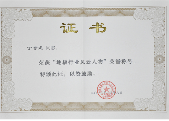 丁奇龍董事長獲得“地板行業風雲人物”榮譽稱號