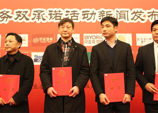 2013年1月18日,由中國木材與木製品流通協會主辦的“中國好地板--2013年地板30家暨百強經銷商產品質量與售後服務雙承諾”活動新聞發布會在北京人民大會堂隆重舉行。全國各地30家地板性爱香蕉视频及百名優秀經銷商聚集於此,共襄此次盛會。